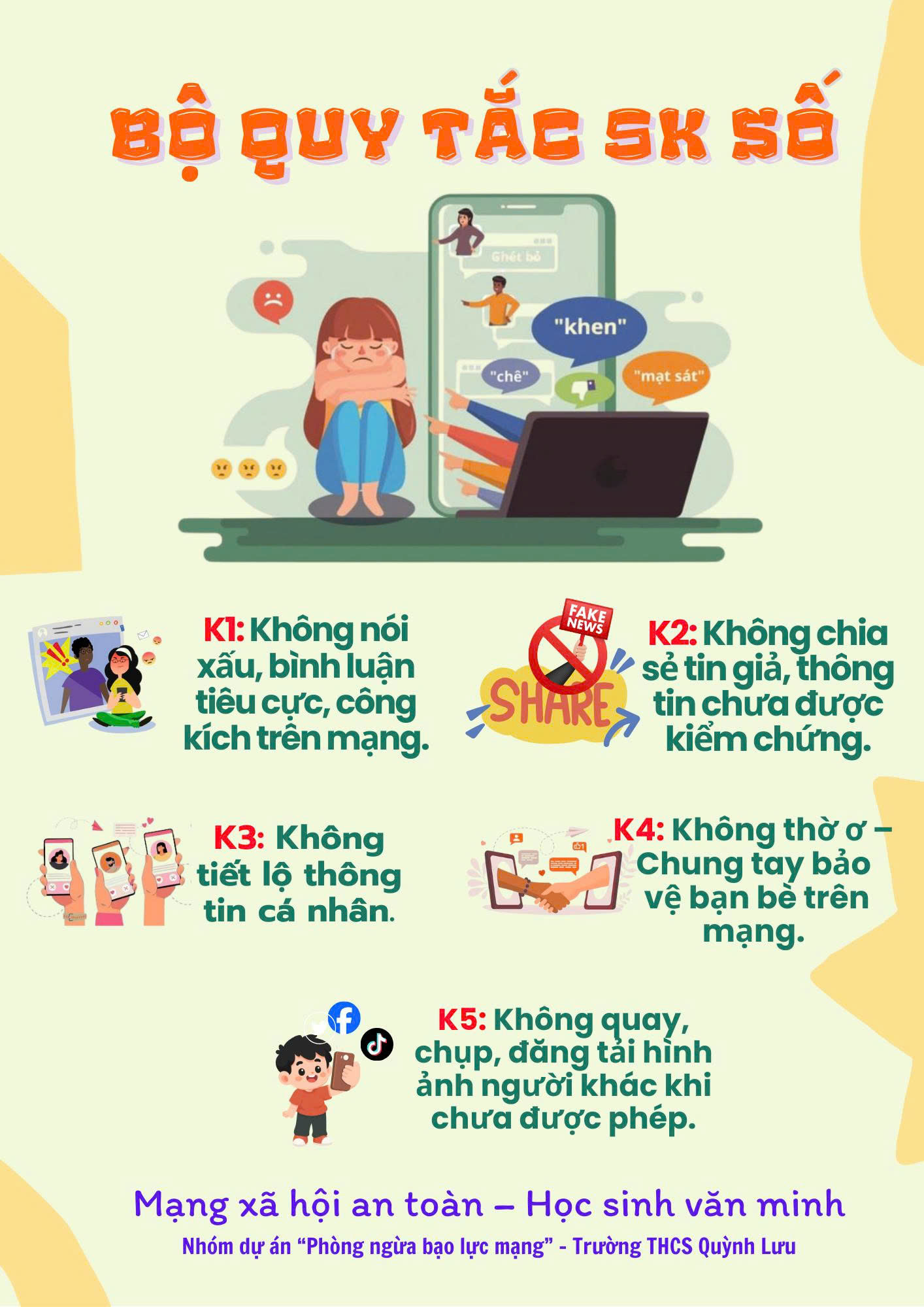 Thực hiện tốt Bộ quy tắc 5K số chính là cách mỗi học sinh tự bảo vệ mình, bảo vệ bạn bè và góp phần xây dựng môi trường mạng an toàn, lành mạnh.